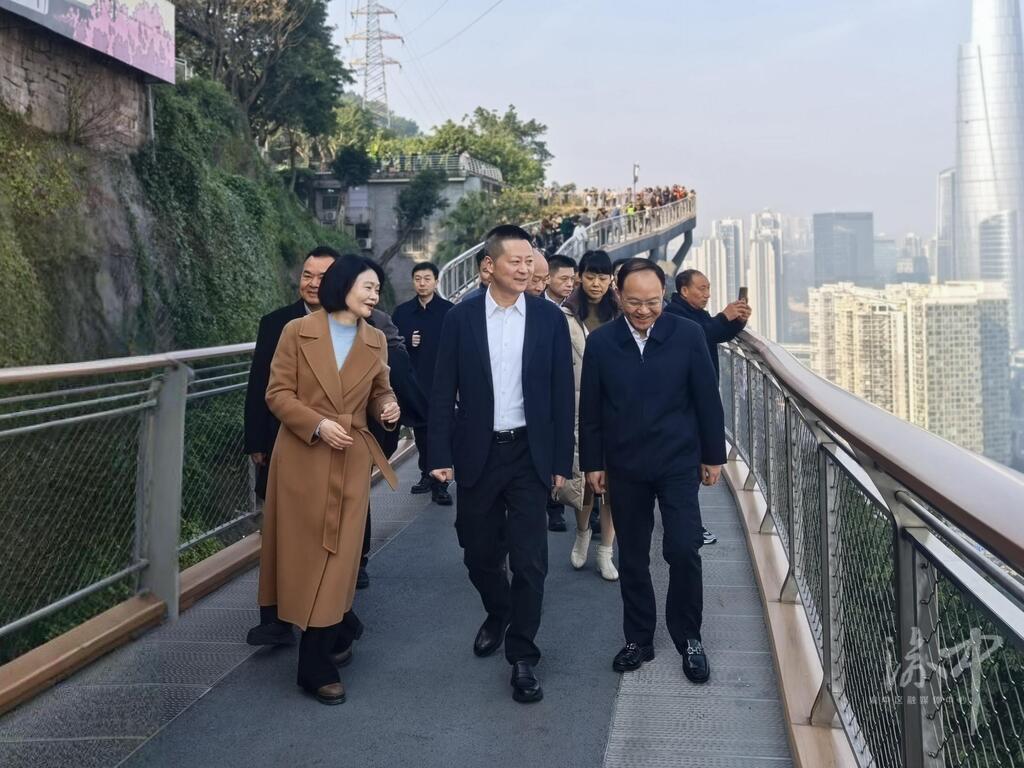 渝中区委副书记、区长谢东督导检查鹅岭栈桥大客流导控及附属设施安全情况。