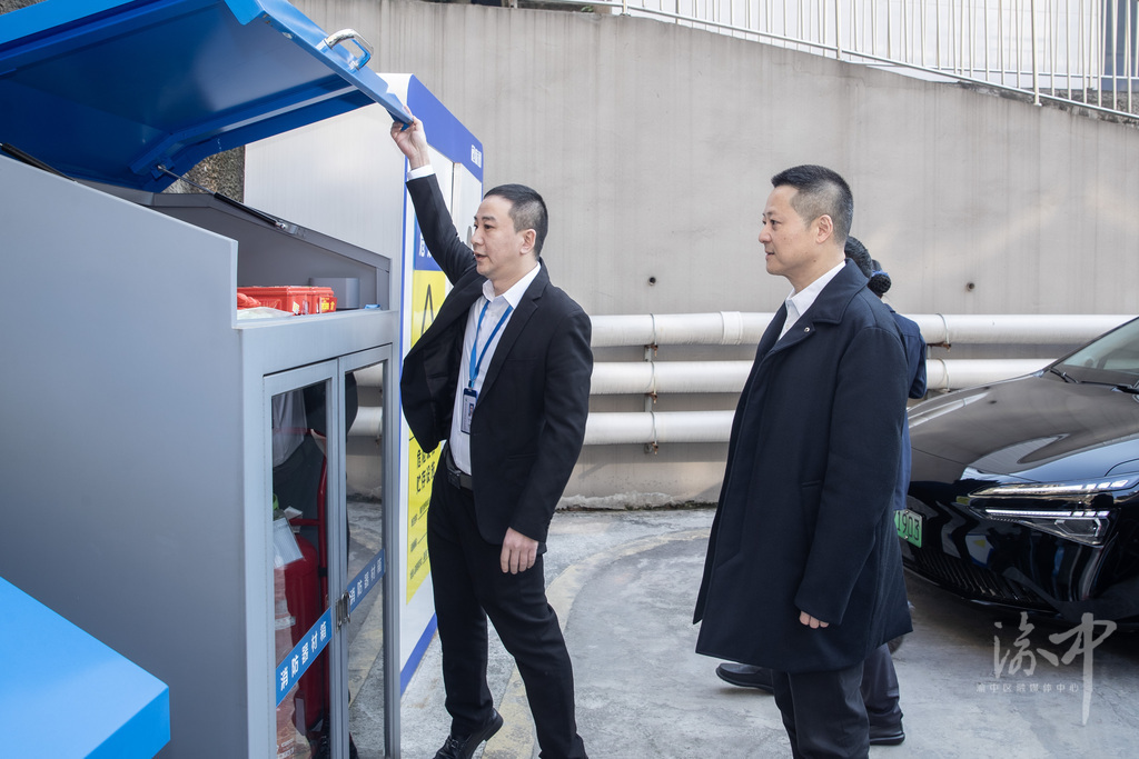 渝中区委副书记、区长谢东督导检查重庆复星国际中心高层建筑消防安全和商贸促销情况。