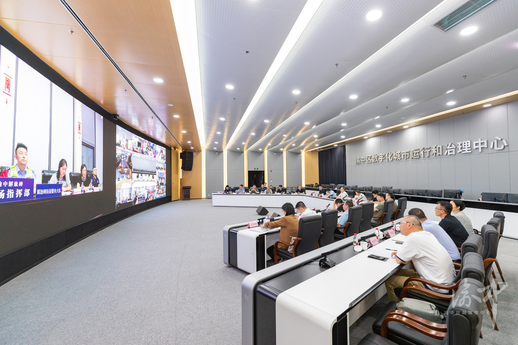 渝中区委书记黄茂军在区数字化城市运行和治理中心调度检查重点区域现场指挥部、部门街道值班值守等工作。
