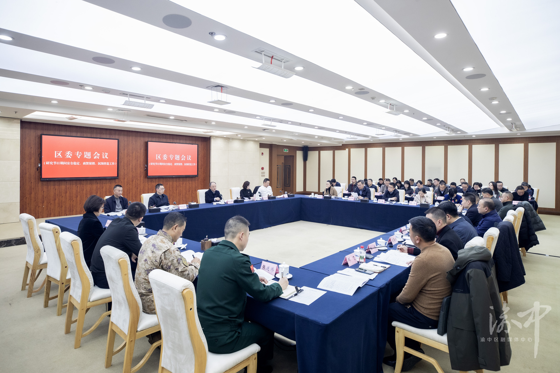 12月24日下午,渝中区委书记黄茂军主持召开专题会议,研究部署即将到来的元旦、春节期间全区安全稳定、商贸促销、氛围营造工作。他强调,要深入学习贯彻党的二十届四中全会精神,全面落实习近平总书记关于统筹发展和安全的重要论述及视察重庆重要讲话重要指示精神,认真落实市委六届八次全会和市委经济工作会议要求,按照区委十三届八次全会安排,统筹做好节日期间各项工作,为市民游客欢度节日营造良好氛围。