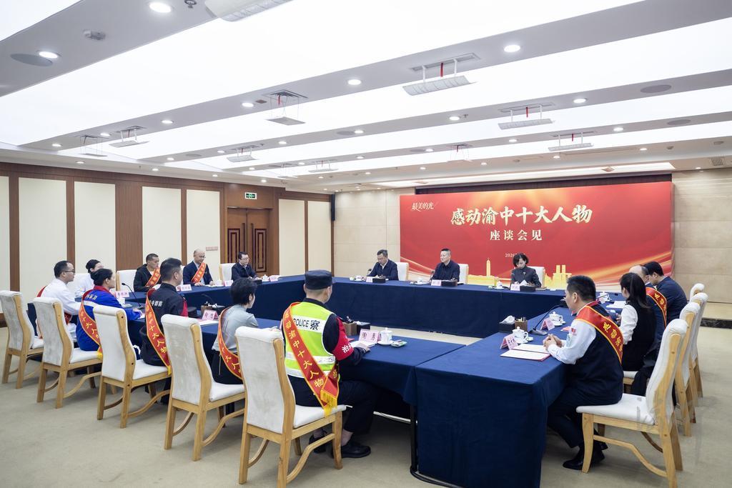 渝中区委书记、区长谢东与“感动渝中十大人物”获奖者座谈交流。