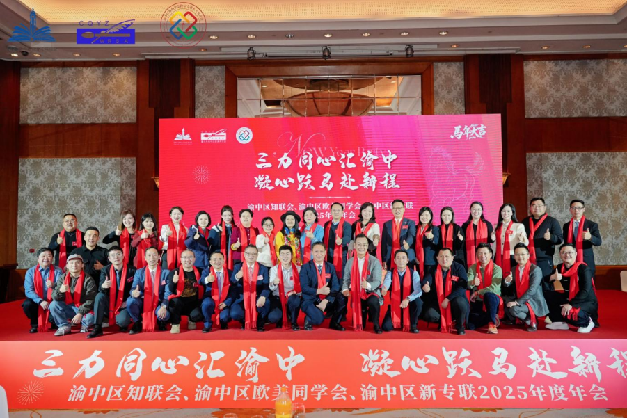 2月2日,渝中区知联会、渝中区欧美同学会、渝中区新专联携手举办了2025年度“三力同心汇渝中 凝心跃马赴新程”联合年会。区委常委、统战部部长李兴建,区委统战部相关领导,区知联会、区欧美同学会、区新专联会长班子及及会员代表会190余人参加。