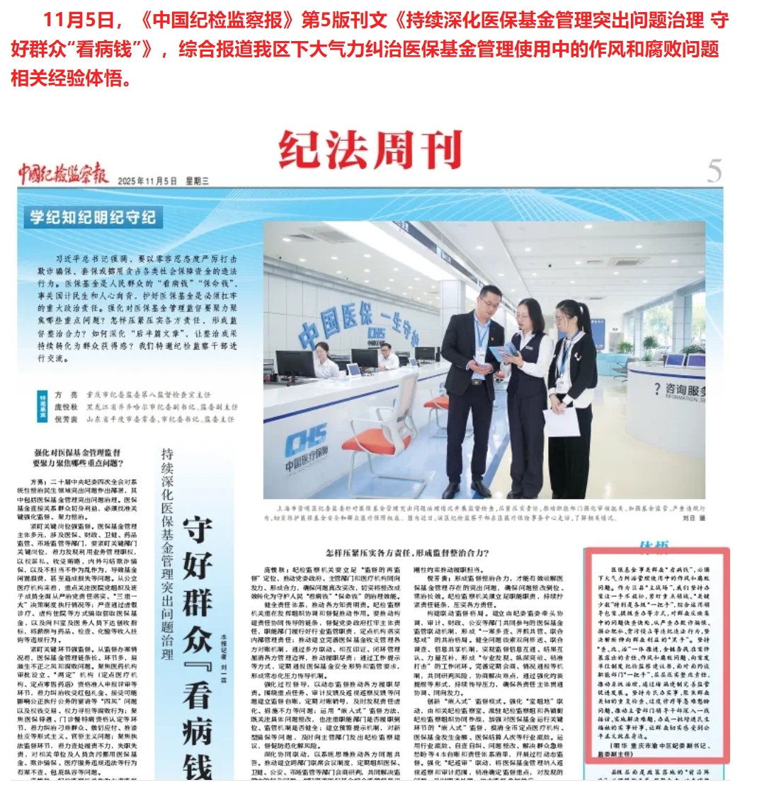 庞悦秋:纪检监察机关要立足“监督的再监督”定位,推动党委政府、主管部门和医疗机构同向发力、形成合力,确保问题真改实改,切实将整改成效转化为守护人民“看病钱”“保命钱”的治理效能。