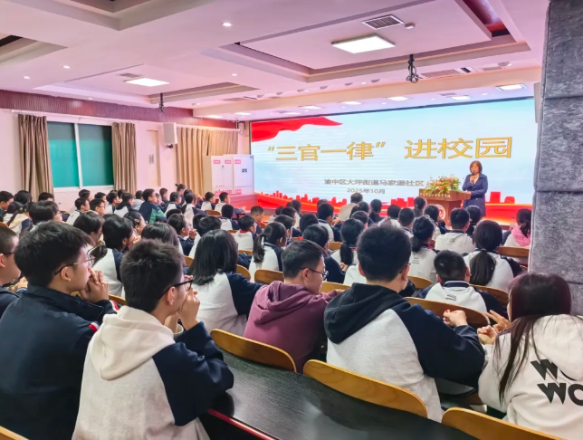 大坪街道马家堡社区精心打造校园活动专场,邀请“三官一律”走进重庆市第六十六中学,为120余名师生开展“莎姐守未”宣讲、青少年禁毒教育及防犯罪宣传,用真实案例和互动问答,让安全与法治意识深植师生心中。如今,护学岗就在校门口,上放学高峰时段“见警察、见警车、见警灯”成为常态,师生们谈及上下学的安全感,话语里满是认可。