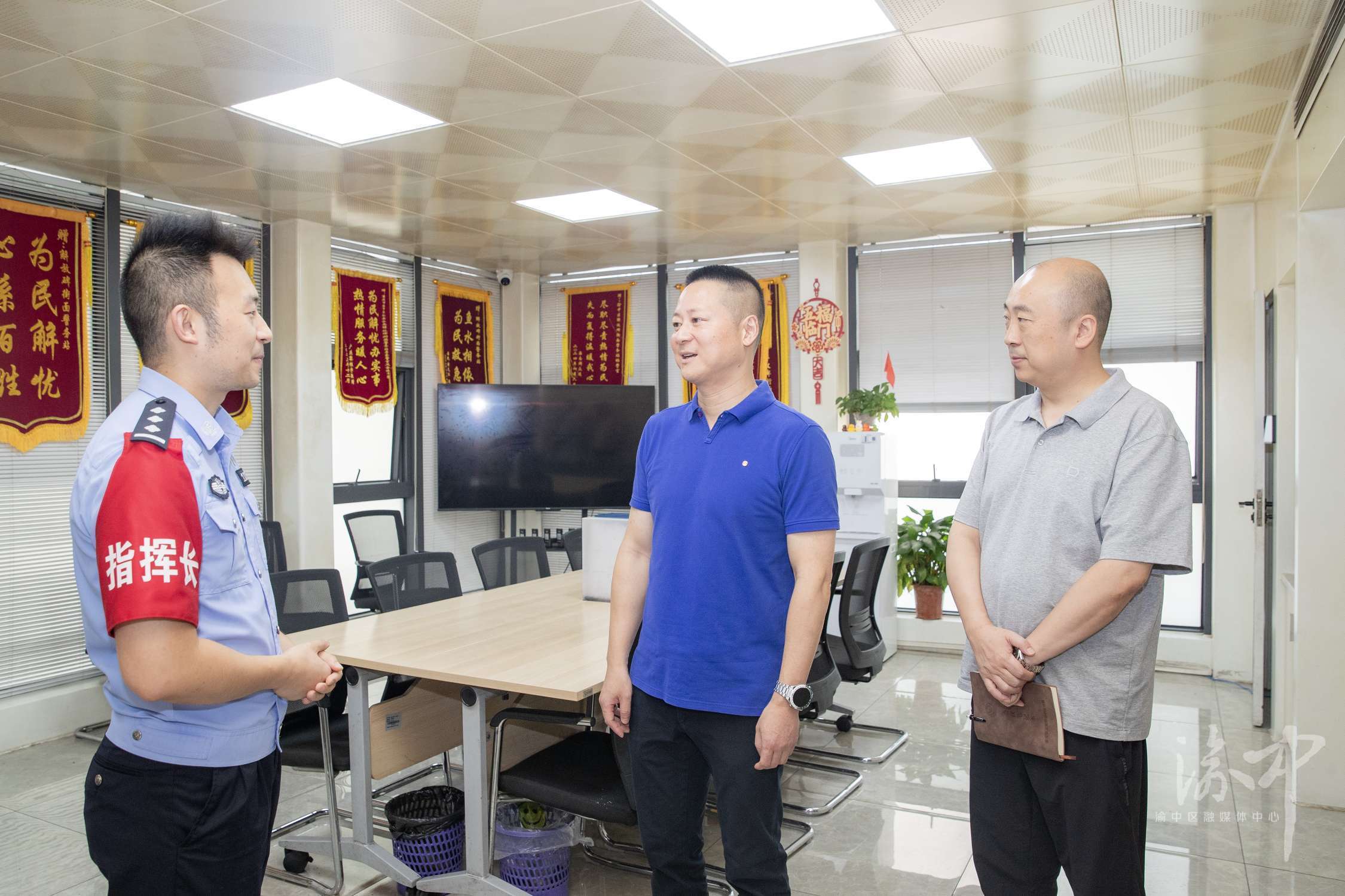 渝中区委副书记、区长谢东在解放碑街面警务站慰问一线工作人员。